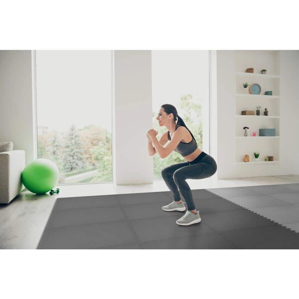 Black/Gray 24 in. x 24 in. x .52 in. Foam Dual Sided Impact Gym Floor Tiles (4 Tiles/Pack (16 sq. ft.) by TrafficMaster